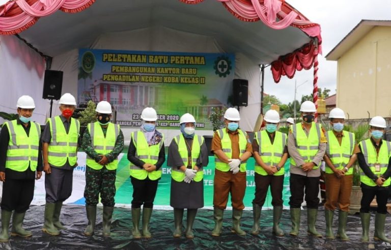 Ketua Pengadilan Tinggi Bangka Belitung (PT Babel) Y.M. Ibu Asnahwati, S.H., M.H. didampingi Ketua Pengadilan Negeri (PN) Koba Kelas II Ibu Yuliana, S.H., M.H. dan Sekretaris serta Panitera PT Babel, meletakkan batu pertama pembangunan kantor baru PN Koba Kelas II, bertempat di area Perkantoran Pemkab. Bangka Tengah, (Senin, 23/11/2020).