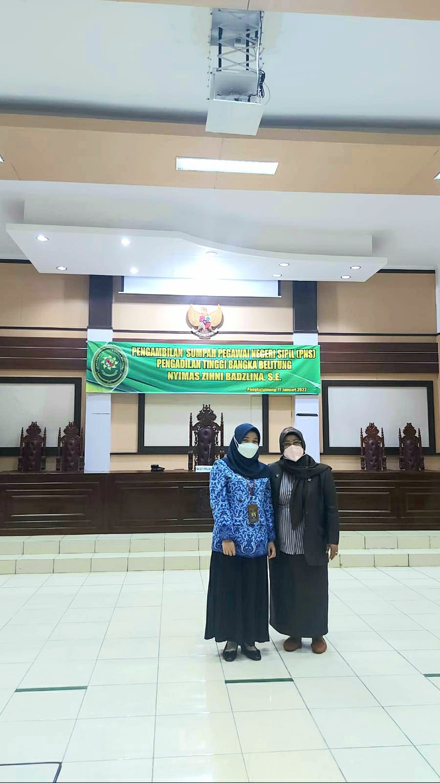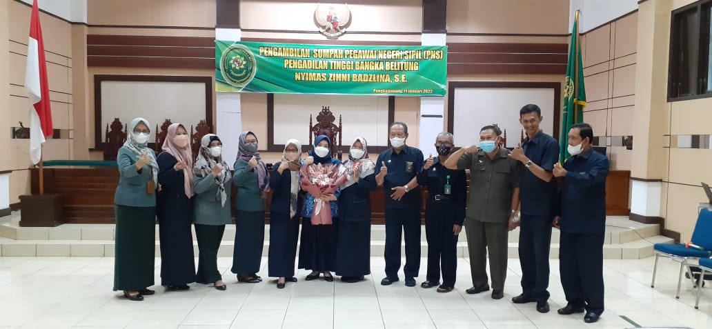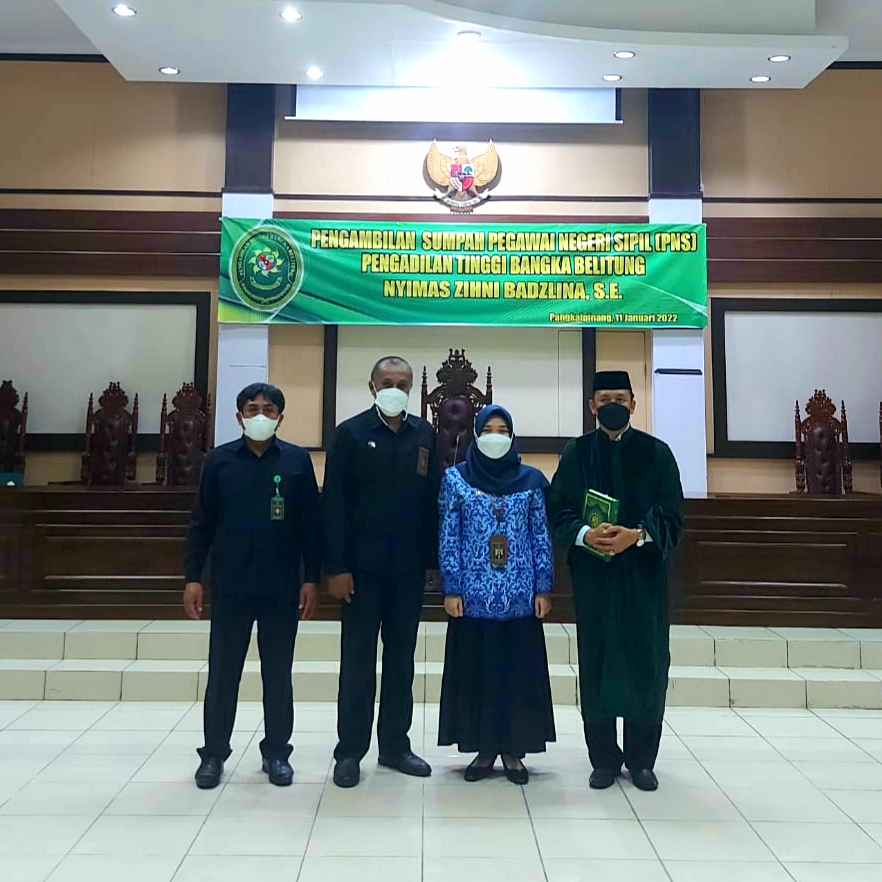Ketua Pengadilan Tinggi Bangka Belitung YM. Ibu Asnahwati, S.H., M.H. melantik dan melakukan pengambilan sumpah PNS kepada Calon Pegawai Negeri Sipil menjadi Pegawai Negeri Sipil (PNS) pada hari Selasa, 11 Januari 2022 berlangsung di Ruang Sidang Utama Pengadilan Tinggi Bangka Belitung