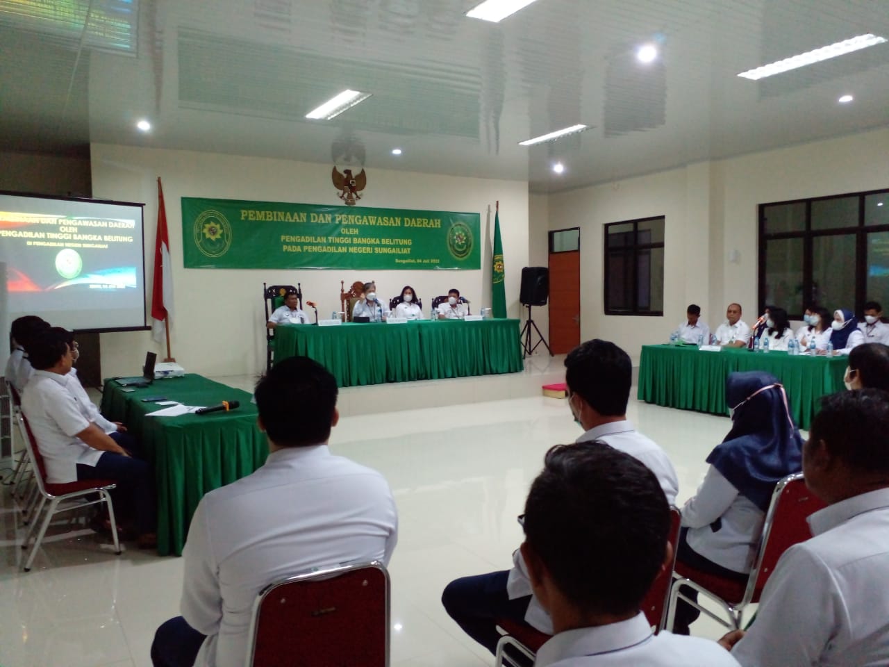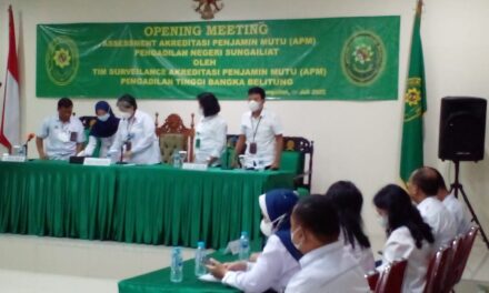 Pangkalpinang(6/7/2022) | Wakil Ketua bersama dengan Tim Asessment Pengadilan Tinggi Bangka Belitung melaksanakan Pembinaaan dan Pengawasan Daerah ke Pengadilan Negeri Sungailiat yang merupakan salah satu Badan Peradilan dibawah Wilayah Hukum Pengadilan Tinggi Bangka Belitung. Pengawasan tersebut berlangsung selama 2 (dua) hari dimulai pada tanggal 4 Juli sampai dengan 5 Juli 2022.