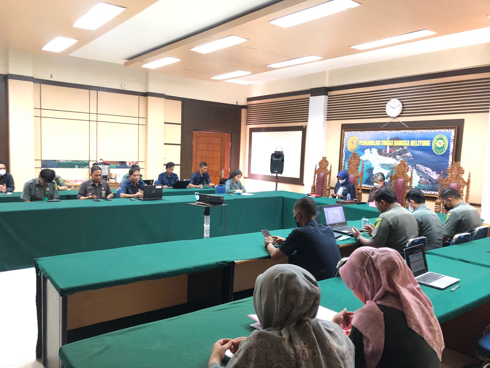 Kegiatan yang berlangsung pada Ruang Rapat Pengadilan Tinggi Bangka Belitung tersebut dihadiri langsung oleh Wakil Ketua, Koordinator Tim Satgas SIPP dan 17 peserta perwakilan PN. Adapun keberlangsungan rapat membahas tentang Monitoring dan supervisi kesiapan PN untuk penerapan Register Elektronik, Kiat Satuan Kerja dalam mempertahankan nilai EIS serta pemecahan masalah masalah yang terjadi saat sinkronisasi SIPP antara Pengadilan Tingkat Banding dengan Tingkat Pertama, yang kemudian hasil Rapat Koordinasi tersebut akan disampaikan ke Dirjenbadilum.