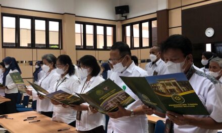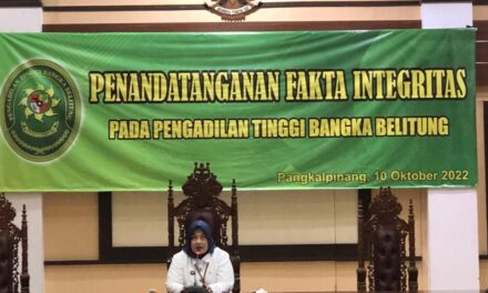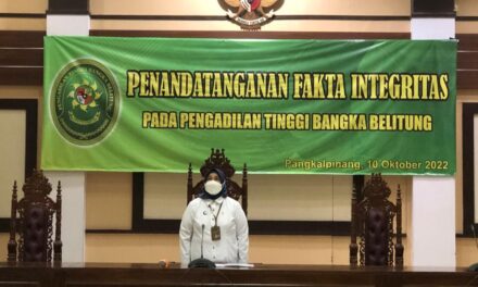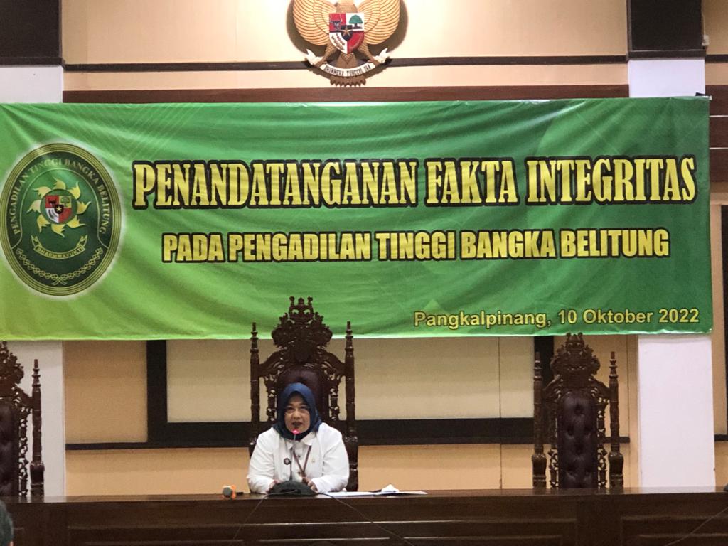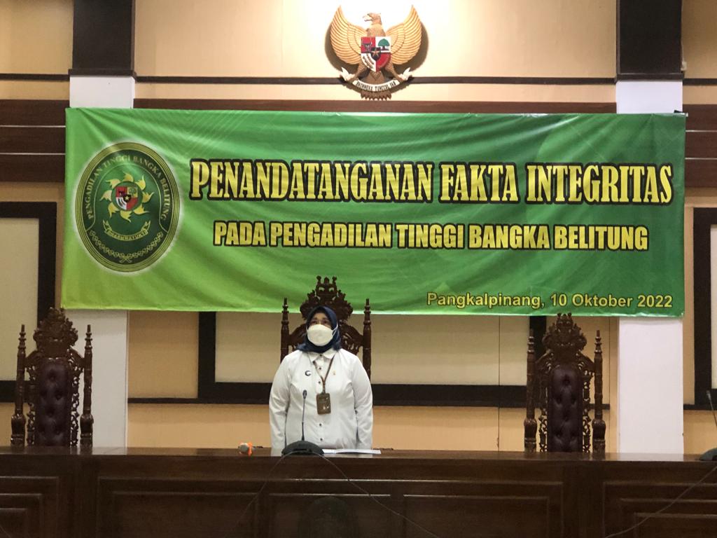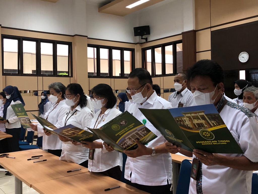 Pangkalpinang (17/10/2022) | Ketua,Wakil Ketua, Hakim Tinggi, Hakim Ad hoc, Pejabat Struktural dan Pejabat Fungsional dan seluruh pelaksana Pengadilan Tinggi Bangka Belitung membacakan dan menandatangani Pakta Integritas pada hari Senin, Tanggal 17 Oktober 2022 di Ruang Sidang Pengadilan Tinggi Bangka Belitung.
