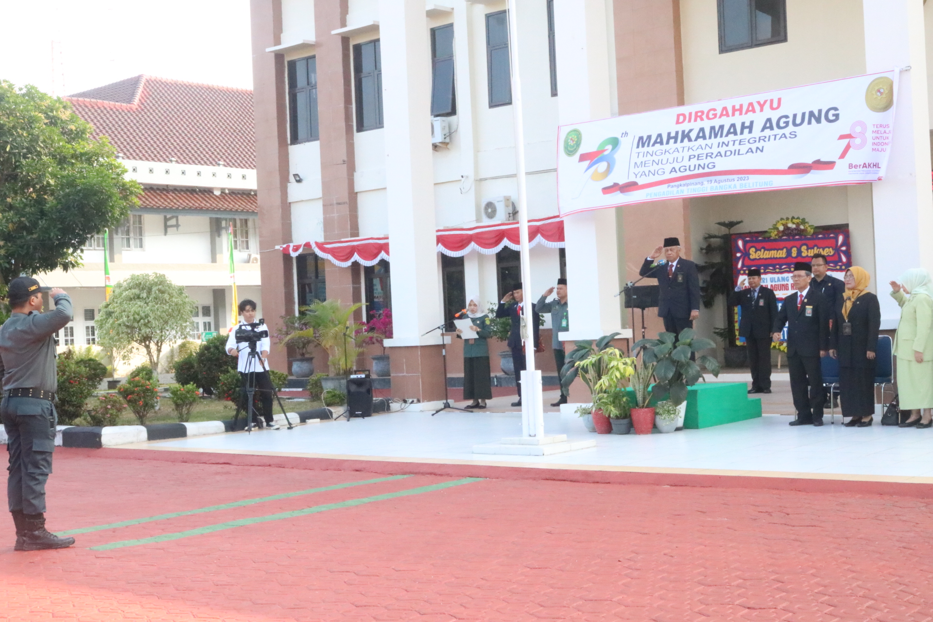 Pangkalpinang (19/8/2023) | Menyambut peringatan Dirgahayu Mahkamah Agung RI ke-78 Tahun bertepatan pada hari Sabtu , tanggal 19 Agustus 2023 Pengadilan Tinggi Bangka Belitung melaksanakan Upacara Dalam Rangka Peringatan Hari Ulang Tahun Mahkamah Agung RI yang ke- 78 Tahun. Peringatan tersebut mengusung Tema “ Tingkatkan Integritas Menuju Peradilan Yang Agung”.
