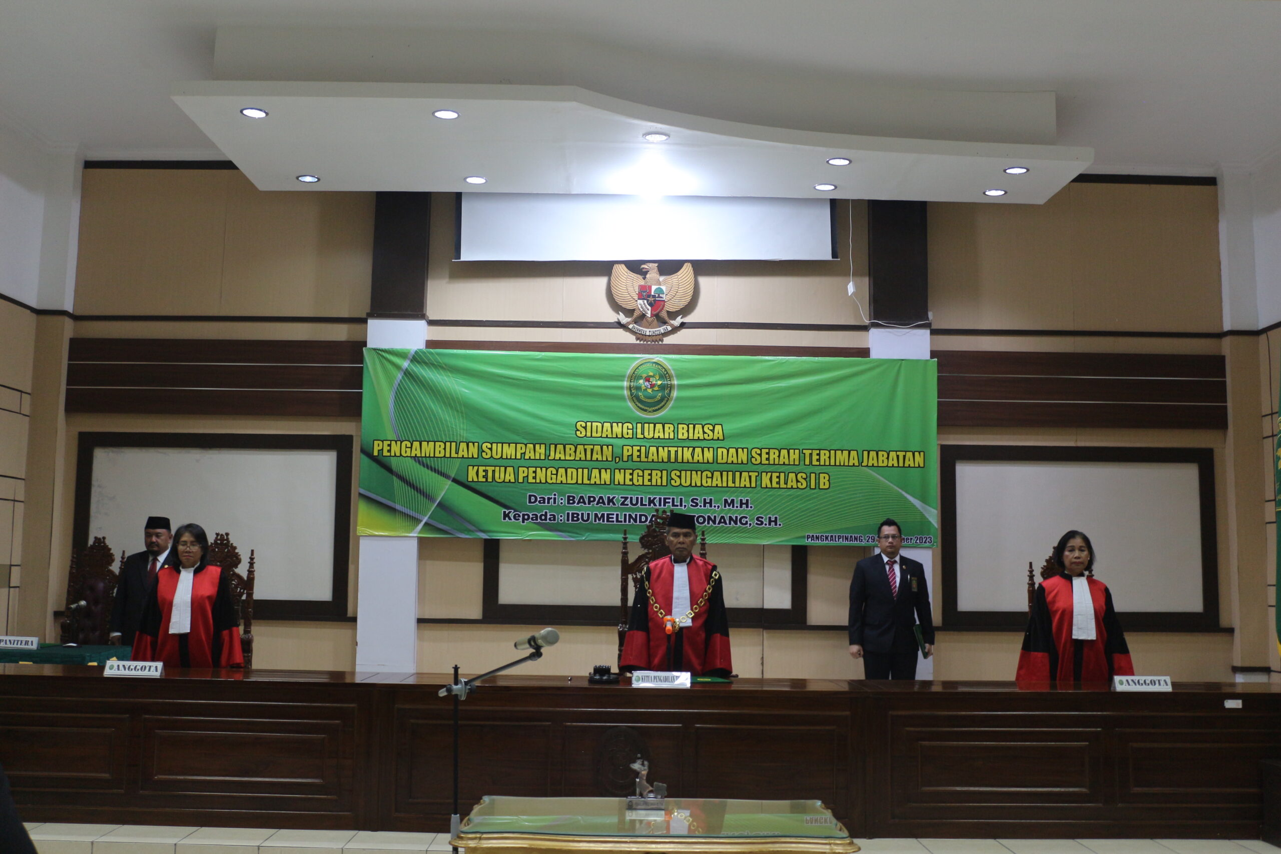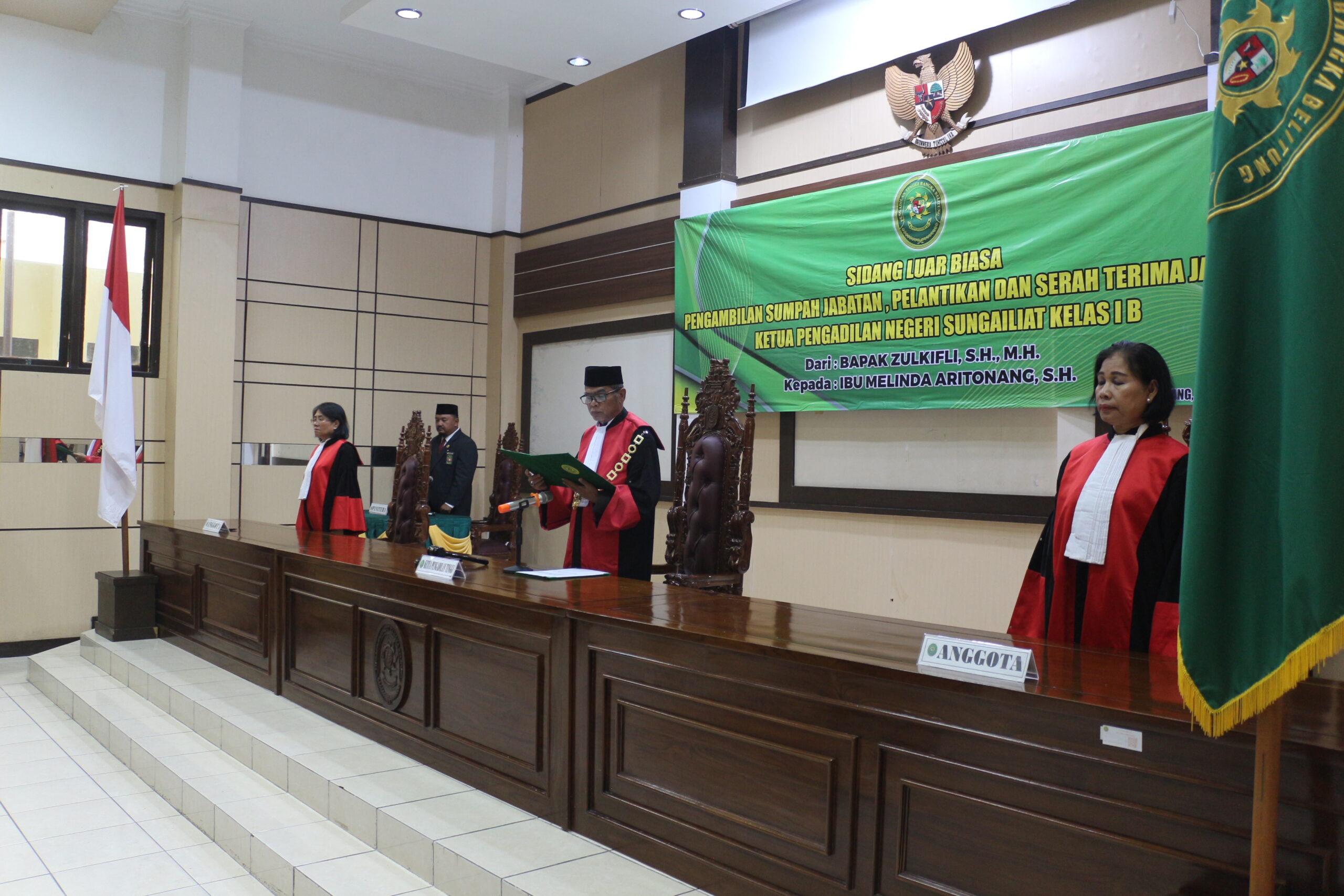 Wakil Ketua Pengadilan Negeri Sungailiat Melinda Aritonang, S.H. mendapatkan promosi menjadi Ketua Pengadilan Negeri Sungailiat menggantikan Ketua sebelumnya Bapak Zulkifli, S.H., M.H. yang mendapatkan promosi dan mutasi menjadi Hakim Pengadilan Negeri Palembang Kelas IA Khusus. Sehubungan dengan hal tersebut Pengadilan Tinggi Bangka Belitung melaksanakan acara pengambilan sumpah, pelantikan dan serah terima jabatan Ketua Pengadilan Negeri Sungailiat yang baru.
