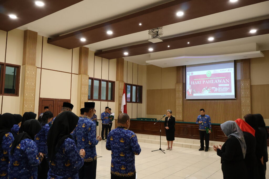 Upacara yang mengusung tema nasional “PAHLAWANKU TELADANKU, TERUS BERGERAK, MELANJUTKAN PERJUANGAN,” menjadi penanda bahwa semangat juang tidak akan pernah padam, meskipun dihadapkan pada kendala fisik atau administratif.