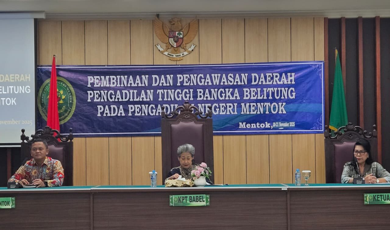 Mentok, 24 November 2025 – Sebagai implementasi fungsi pembinaan dan pengawasan secara berjenjang, Pengadilan Tinggi Bangka Belitung (PT BABEL) telah merampungkan kegiatan Pengawasan Reguler dan Pembinaan yang sangat strategis di Pengadilan Negeri (PN) Mentok. Agenda yang dilaksanakan selama dua hari penuh, pada Kamis, 20 November – Jumat, 21 November 2025, ini menjadi momentum krusial untuk memperkuat profesionalisme dan integritas Hakim serta seluruh aparatur peradilan di wilayah yurisdiksi PT BABEL.