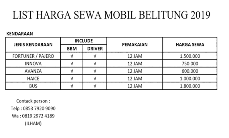 Room Rate Hotel Belitung 2019, selengkapnya